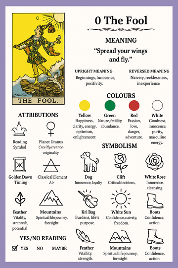 In tarot, THE FOOL is not about foolishness, but about trust. It speaks of clean pages, open roads and the decision to move forward even if you cannot see every step.