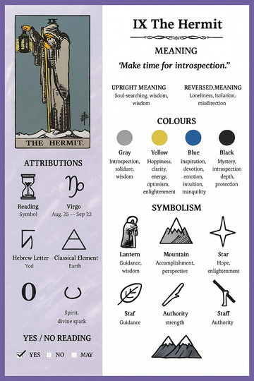 In tarot, THE HERMIT is not about isolation for its own sake. It is about conscious retreat: stepping back from noise so you can hear your own thoughts again. It speaks of inner guidance, soul-searching and the kind of wisdom that only comes from living through your own experiences.