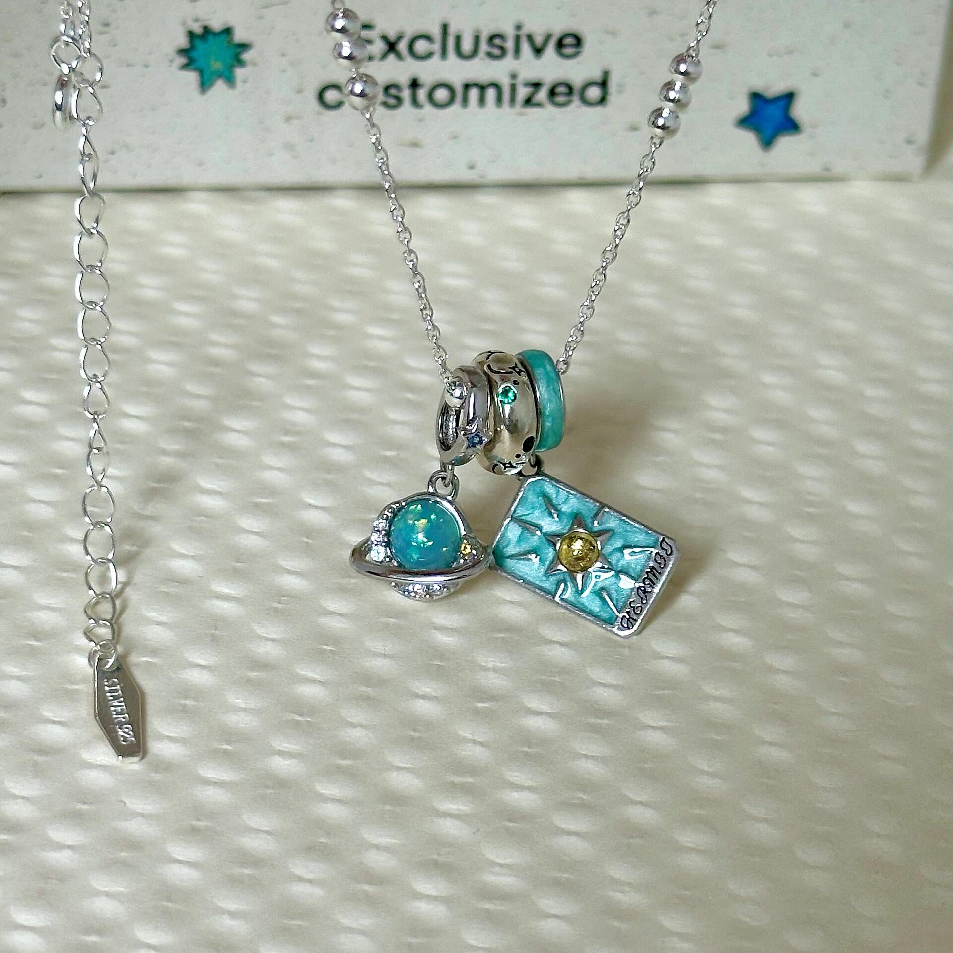This piece is crafted in S925 sterling silver, finished with a handcrafted gemstone setting and subtle enamel detailing.