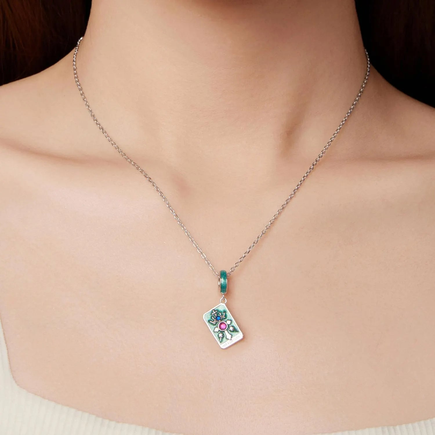 This piece is crafted in S925 sterling silver, finished with a handcrafted gemstone setting and subtle enamel detailing.