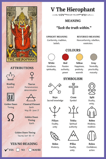 In tarot, THE HIEROPHANT is the card of wisdom passed down, of teachings, rituals and structures that help you make sense of your own journey. It can represent mentors, spiritual paths, communities, or simply the frameworks you choose to live by.