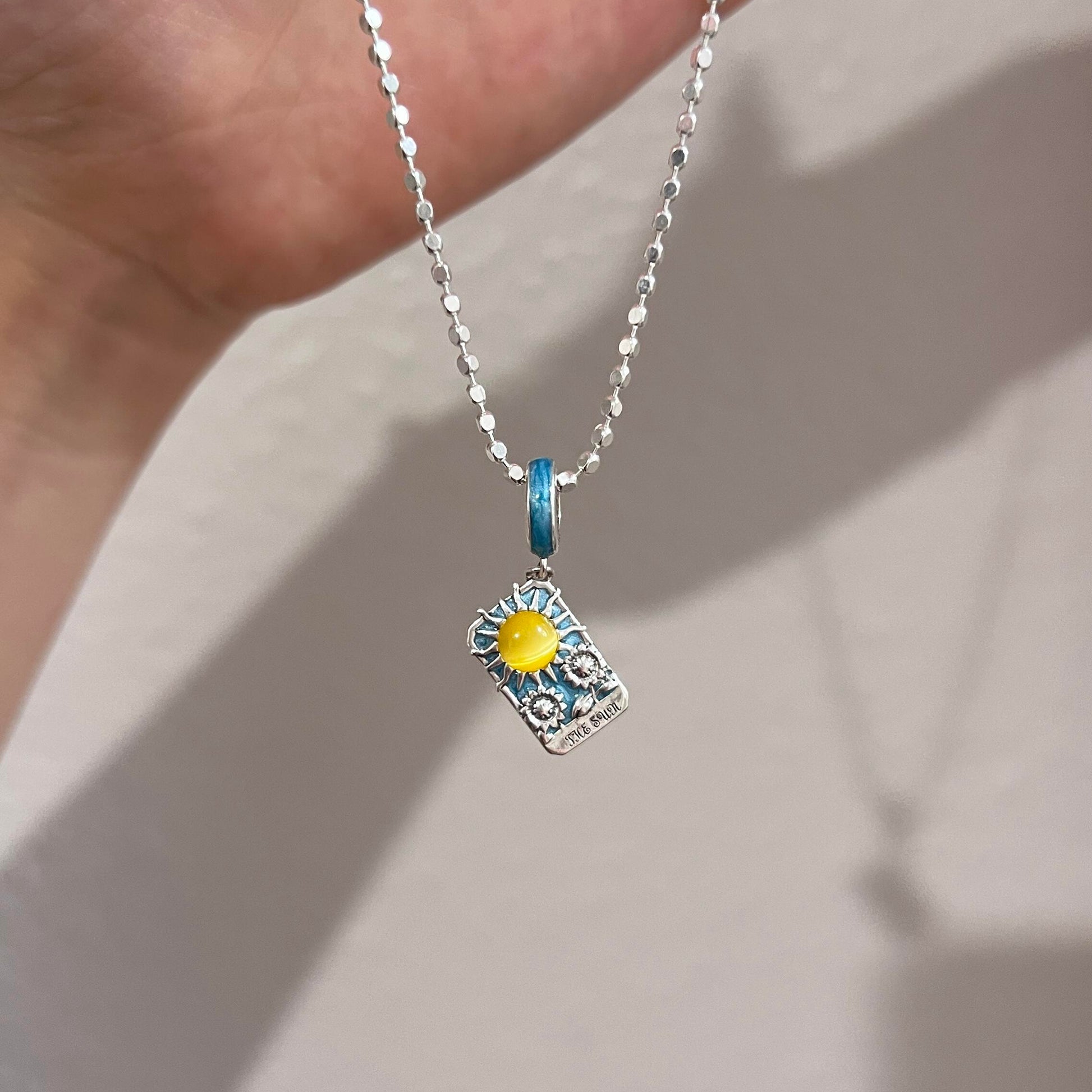The XIX THE SUN pendant feels like open windows and honest light. Worn as a small tarot card at the collarbone, it carries a bright, effortless presence—never loud, but unmistakably alive. This is the piece you reach for when you are ready to step out of the fog, when you want your day to feel a little clearer, lighter and more genuinely yours.